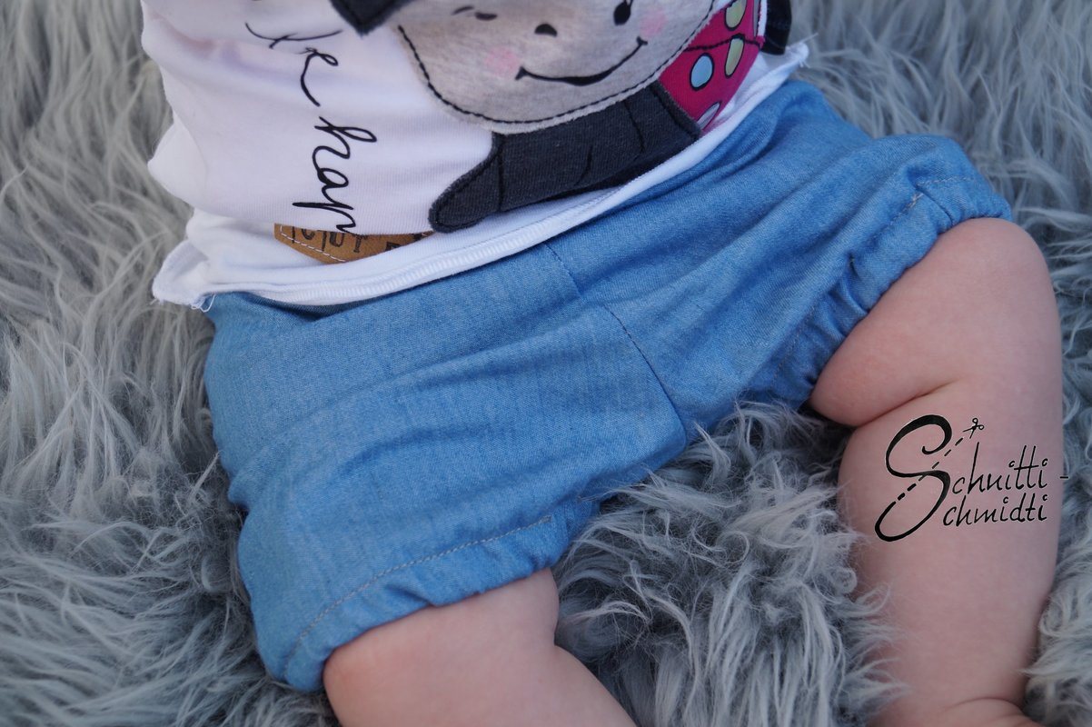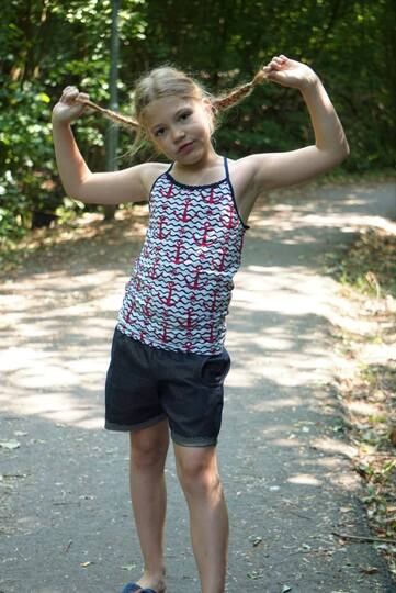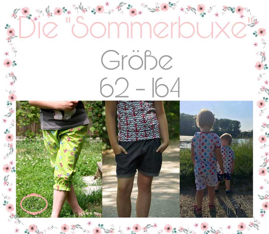 Die Sommerbuxe ist ein Schnitt für eine luftige Sommerhose aus Musselin, Leinen oder Baumwolle für Kinder. Kurz oder ¾. Mit oder ohne Gummizug an Bauch und Beinen.