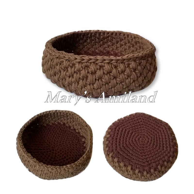The basket has been designed to be made with cotton bulky (chunky) yarn, worked with two strands. However, you can choose a different weight of cotton, acrylic or wool yarn as long as you also select an appropriate crochet hook.