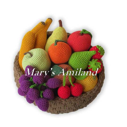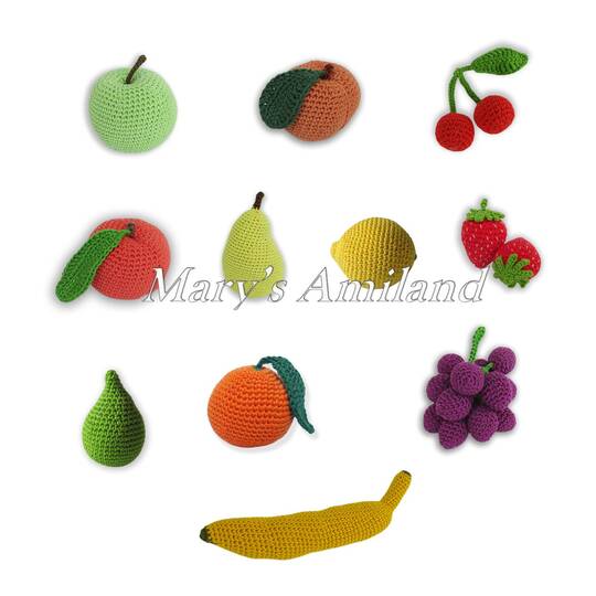 This eBook includes 12 cute amigurumi patterns, 11 different fruits and 1 basket.