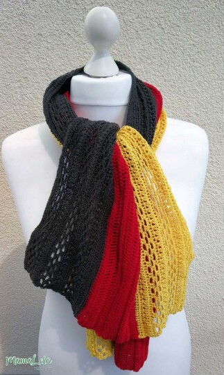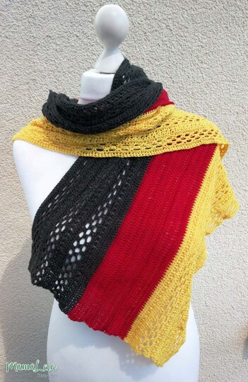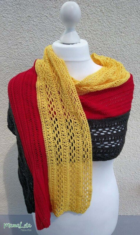 Ursprünglich entstand der Schal in traditionellen Länderfarben zur WM 2018.