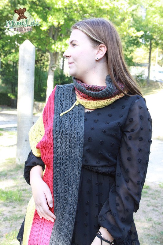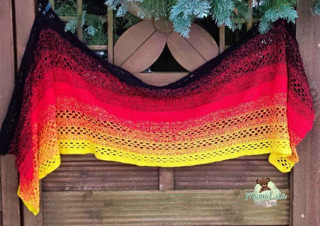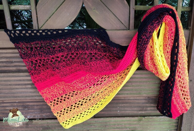 Da die Farben aber wohl nicht jeden ansprechen habe ich mir passend zur EM 2024 die Anleitung zur Hand genommen und diese noch einmal in alltagstauglichen Farben gehäkelt. So kann der Schal jeden von uns durchs Jahr begleiten. Die Muster können in der Reihenfolge individuell gehäkelt werden – so gleicht kein Schal dem Anderen.