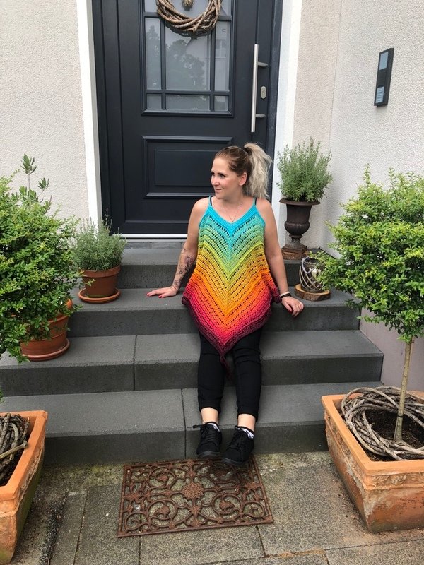 Hinweis: Beim vorgestellten Produkt handelt es sich NICHT um das fertig gehäkelte Stück, sondern lediglich um eine Schritt-für-Schritt-Häkel-Anleitung, die Dir dabei hilft, selbst dieses Shirt zu häkeln.