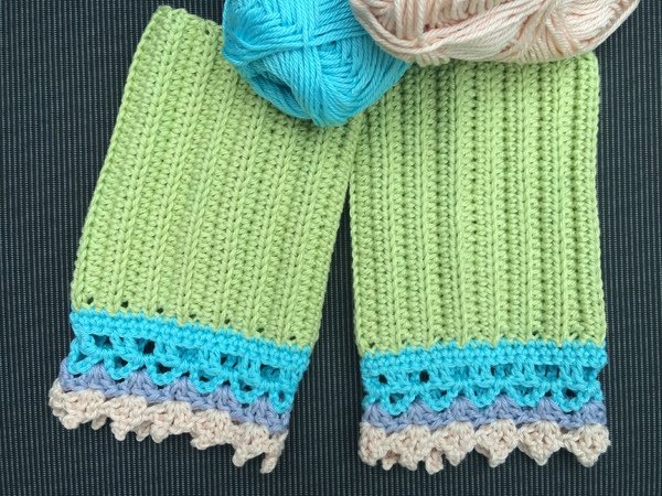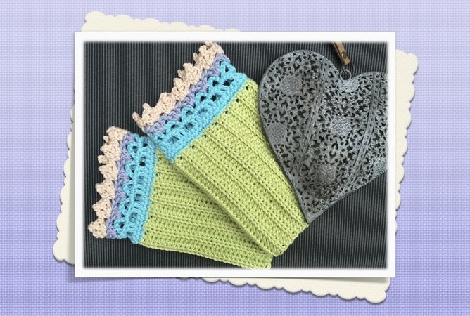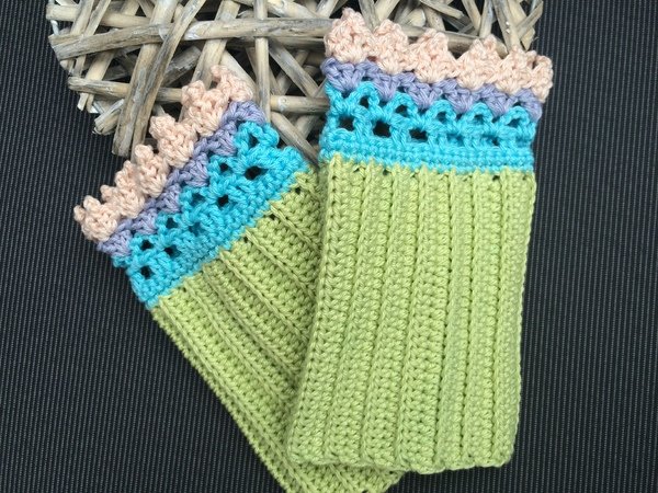Diese Armstulpen in zarten Pastelltönen und einem romantischen Spitzenabschluss sind ganz schnell an einem Abend gehäkelt.