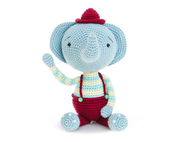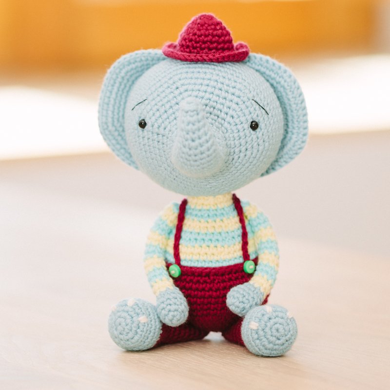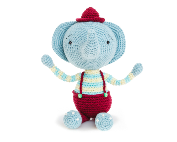 Wenn Du dasselbe Garn und dieselbe Häkelnadel verwendest wie ich, wird der Elefant ca. 15,5 cm (6,1 Zoll) groß. Du kannst es größer oder kleiner machen indem du ein anderes Garn benutzt, passe aber dann die Häkelnadel und die Sicherheitsaugen entsprechend an.