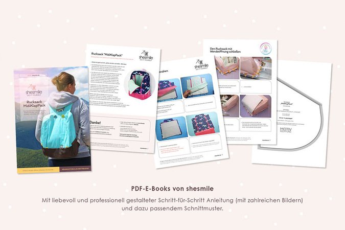 PDF-E-Books von shesmile: Diese leicht verständliche Schritt-für-Schritt-Anleitung mit vielen Fotos ist auch für Nähanfänger geeignet, denn die sehr ausführliche Fotoanleitung begleitet dich bei jedem Schritt.