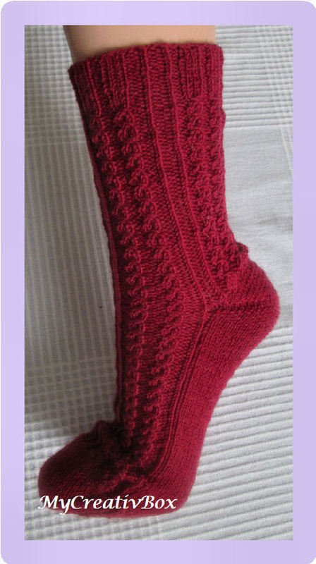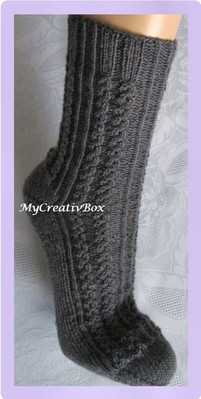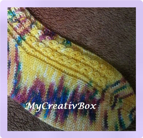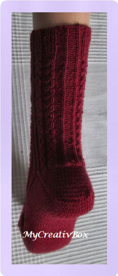 In der Anleitung werden Ferse und Spitze nicht näher erläutert; diese werden in gewohnter Arbeitsweise gestrickt.
