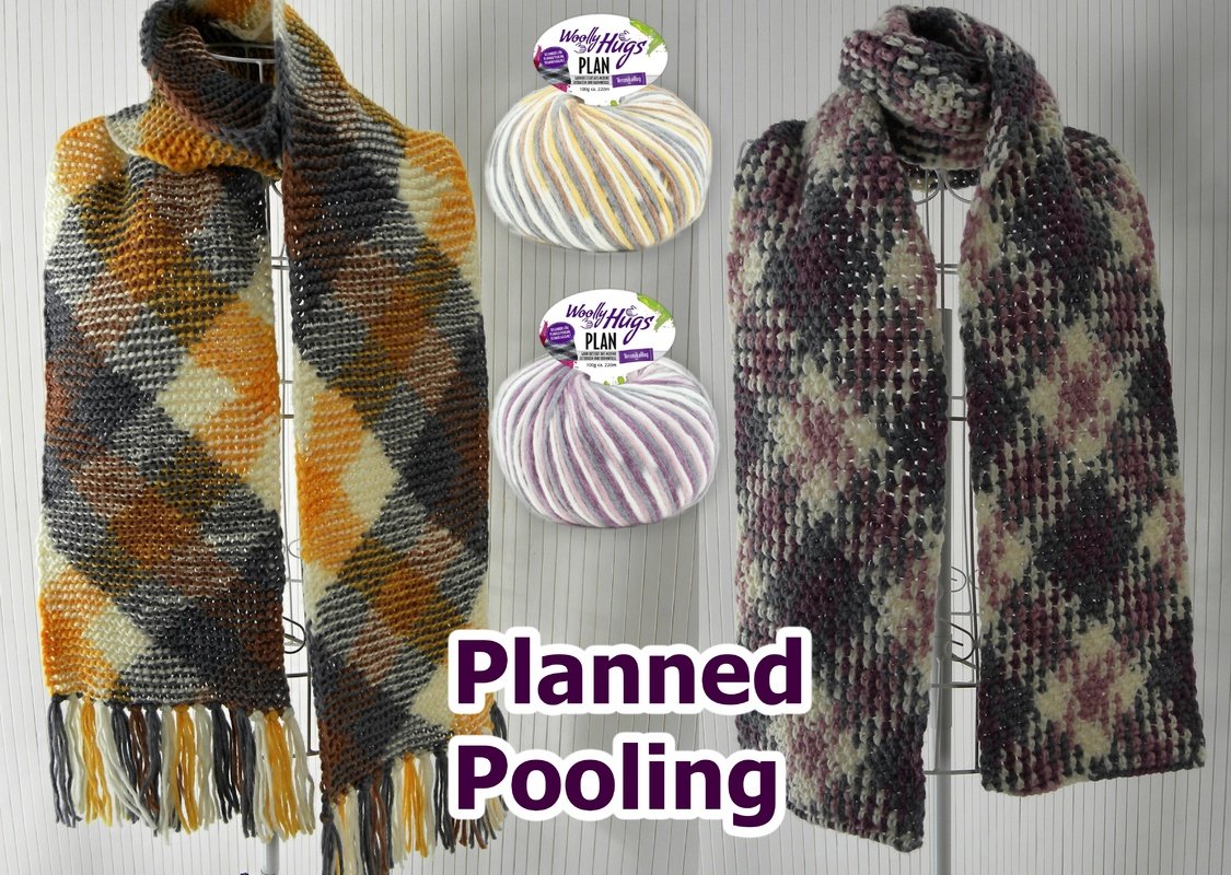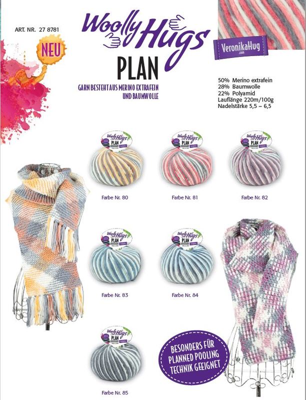 Material: für jeden Schal 200 g Woolly Hugs PLAN in Wunschfarbe, Häkelnadel oder Stricknadeln Nr. 5,5 – 6,5, zwei Büroklammern