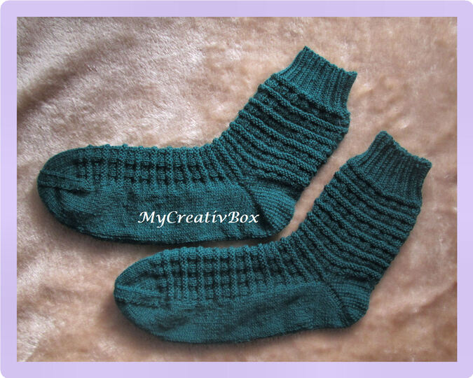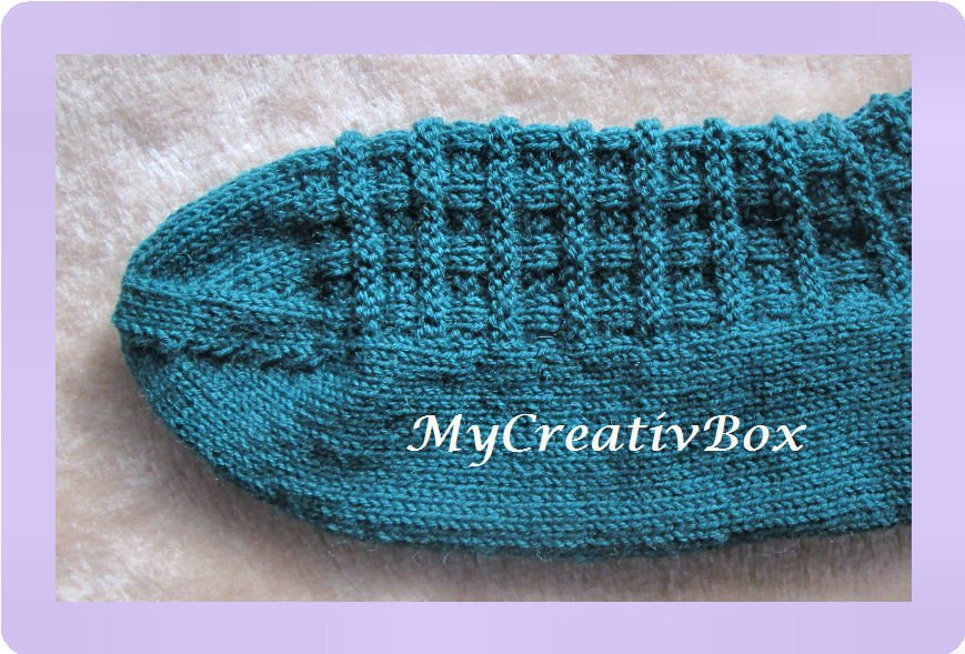 In der Anleitung werden Ferse und Spitze nicht näher erläutert; diese werden in gewohnter Arbeitsweise gestrickt.