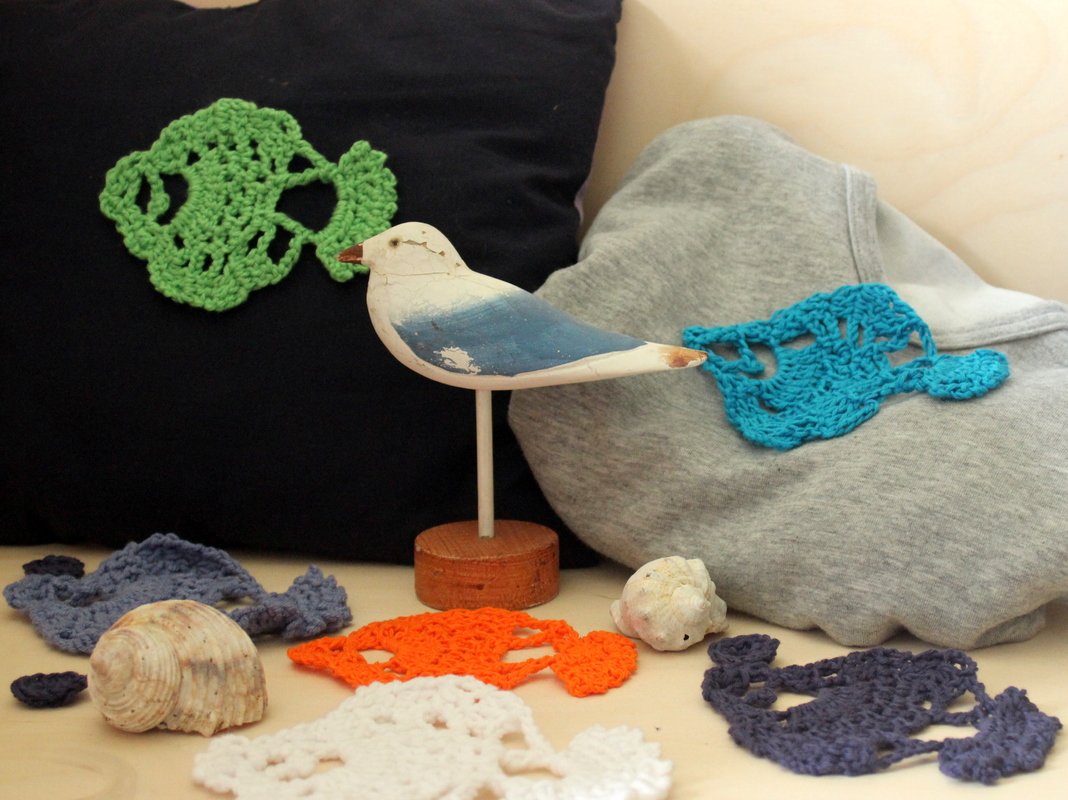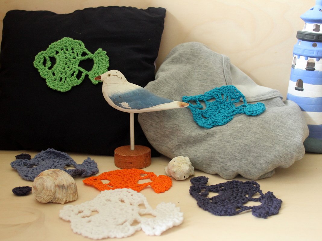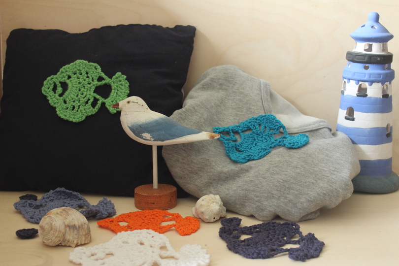 Eine kleine Häkelei für Zwischendurch mit maritimem Flair. Die Fisch-Applikation macht sich gut auf Kissenhüllen, Pullovern und T-Shirts; als Untersetzer für Gläser und Tassen oder zum Personalisieren von Stoff-Einkaufstaschen. Auch als maritime Deko für Tisch und Sideboard eignet sich der Fisch ideal.