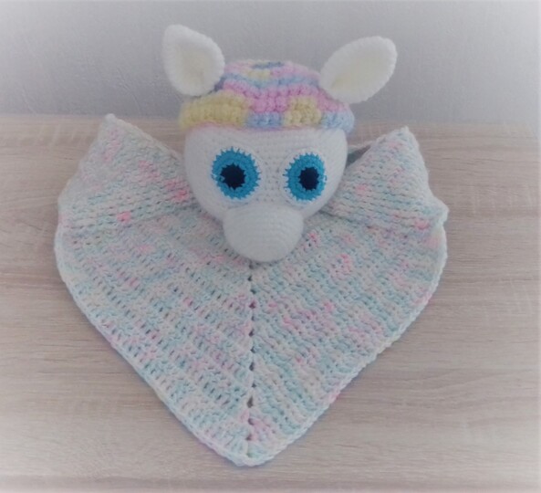 Das Schnuffeltuch kann als Lana das Lama, Louis der Bär oder Anja die Federmaus gehäkelt werden.