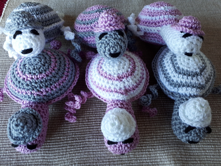 Die Größe der Schildkröten beträgt ca. 11 cm. Je nachdem wie fest man häkelt.