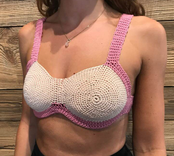 Mein Model hier hat BH Größe 75 B und der selbstgehäkelte BH passt ihr super!