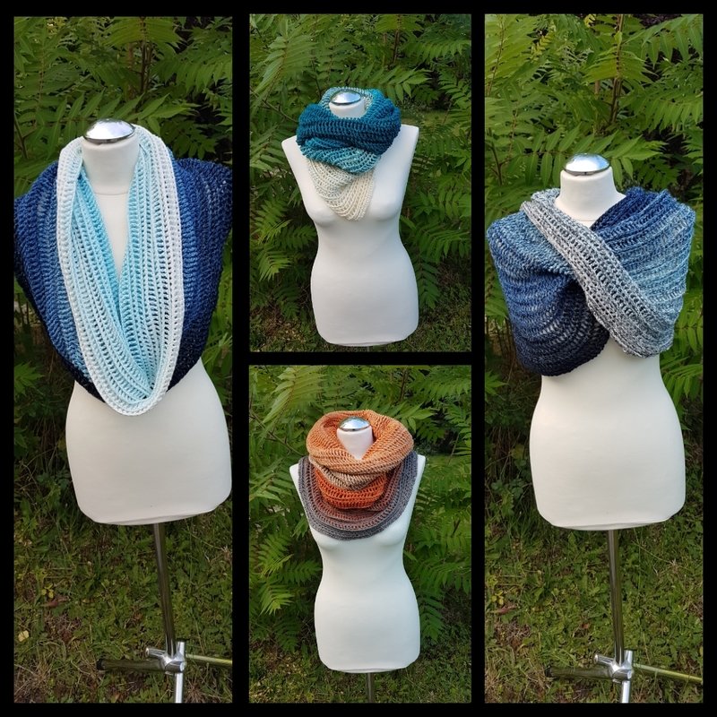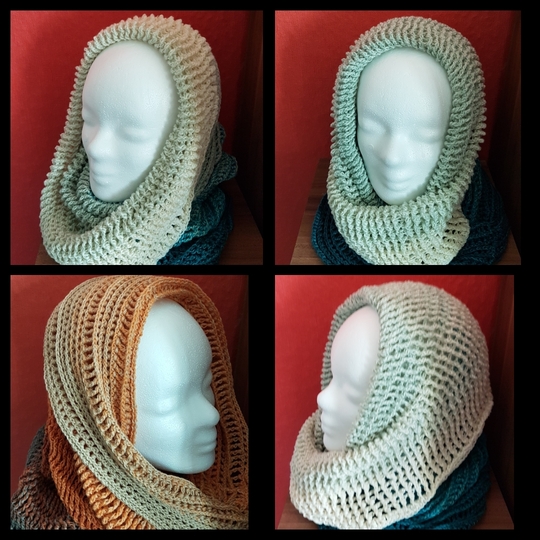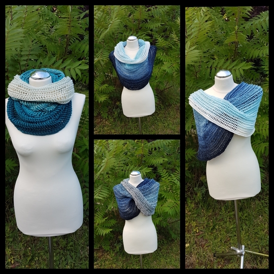 Alles was Ihr benötigt wäre ein Wolly Hugs Bobbel Cotton oder Cotton XTRA, bestehend aus 50 % Baumwolle und 50 % Polyacryl, Lauflänge ca. 800 m / 200 g, 4 fädig. In vielen schönen Farben erhältlich sicher für jeden etwas dabei oder ein beliebiges anderes Garn. Hier ist alles möglich da in der Anleitung erklärt ist wie man auch nach Zentimeterangaben arbeiten kann. Eine entsprechende Häkelnadel und eine Nähnadel. Die Anleitung ist in schriftlicher Form und mit Fotos verdeutlicht. Dieses Modell ist natürlich auch Anfängergeeignet und es bleiben keine Reste. Vernäht werden muss lediglich Anfangs- und Endfaden Man kann den Loop sehr vielseitig verwenden. Als Scoodie oder Strandkleid, als wärmenden Loop oder schmücKendes Accesoir, alles ist möglich. Angegeben sind 4 Größen und verschiedene Tragevariationen. Es ist also für jeden etwas dabei. Das einfache und eingängige Muster sieht sowohl auf der Innen- so wie Außenseite komplett anders aus. Dadurch ist man voll im Doublelayer-Trend.