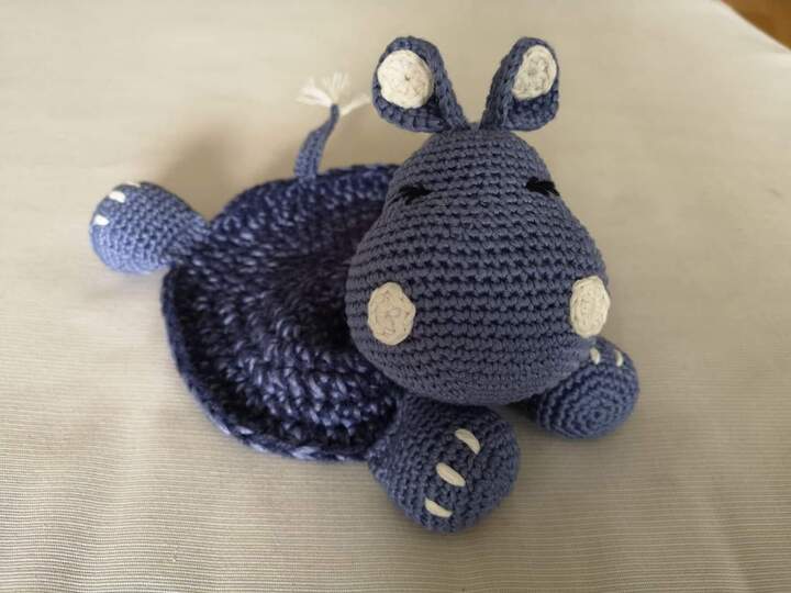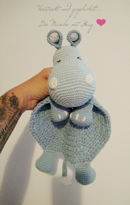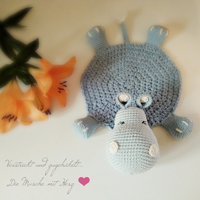 Häkelanleitung zur Herstellung eines süßen Schmusetuchs in Nilpferd-Optik. Ein tolles Geschenk zur Geburt, Taufe, Weihnachten, oder, oder, oder...