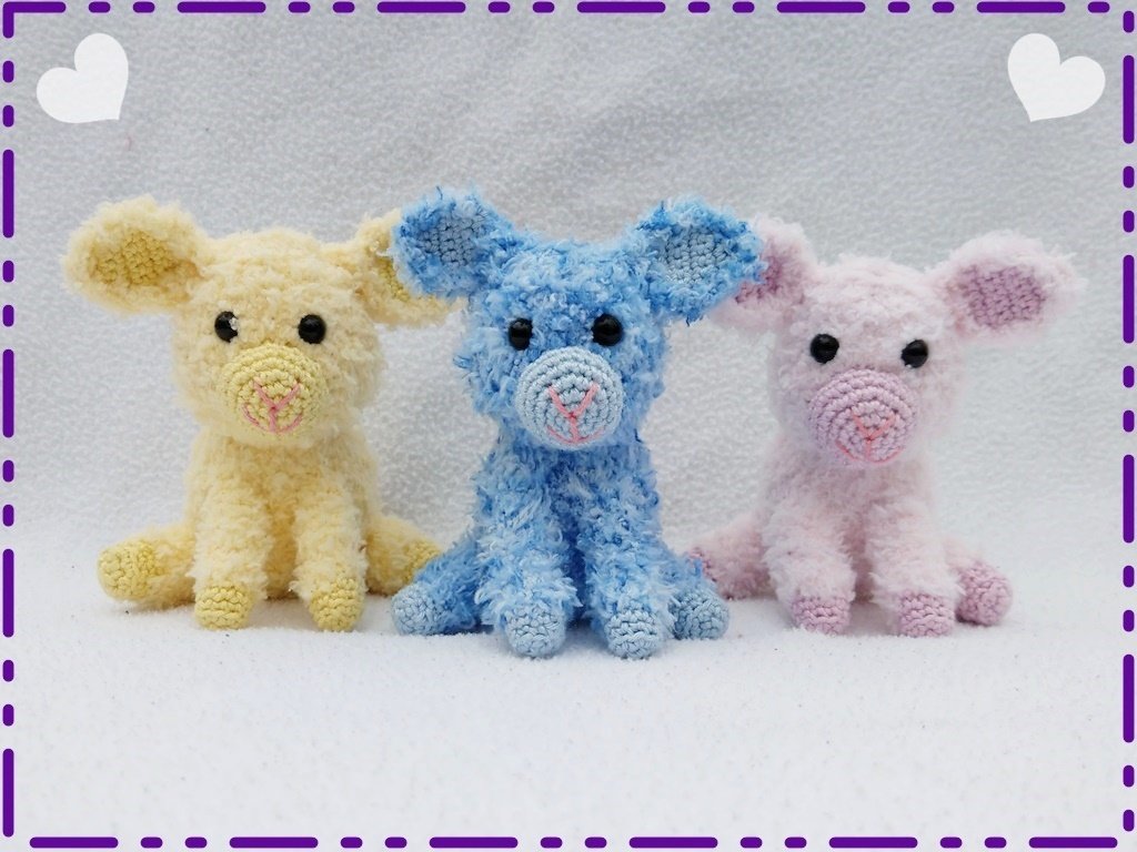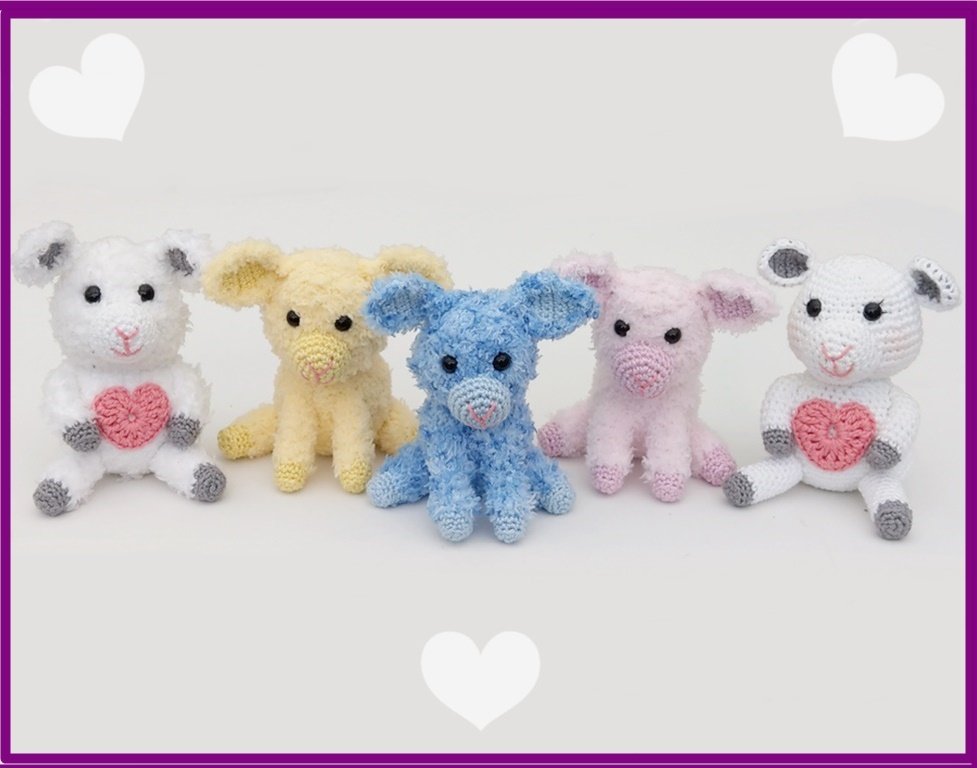 Das aufrecht sitzende Lamm mt Herz wird ca. 11 cm, die bunten Lämmchen ca. 10 cm groß