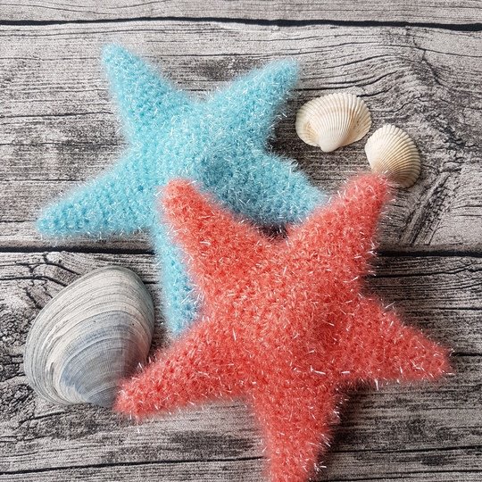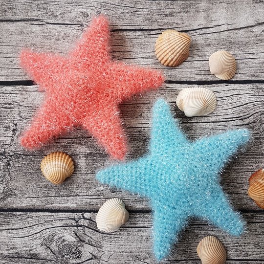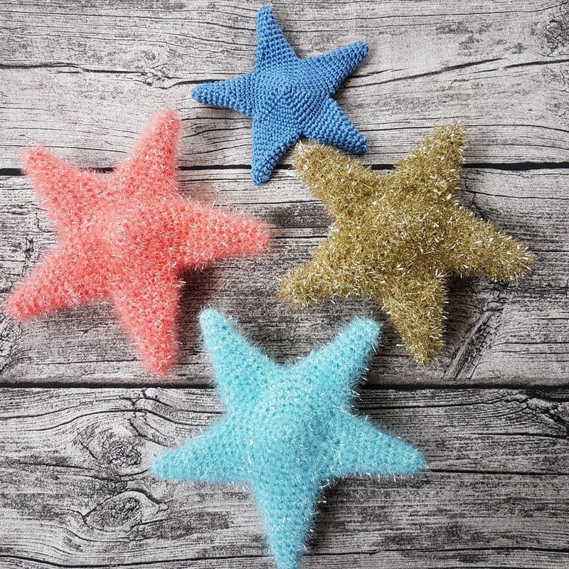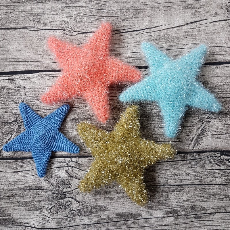 Mit Schwammwolle gehäkelt hat der Stern/Seestern eine Größe von ca. 17cm und passt somit optimnal in die Hand.