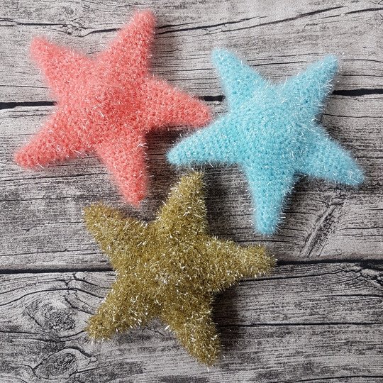 Nach dieser detailliert erklärten Häkelanleitung können Sie tolle Sterne als Spülschwamm, Badeschwamm oder als Deko häkeln.
