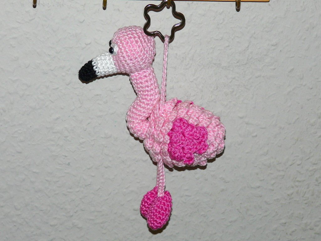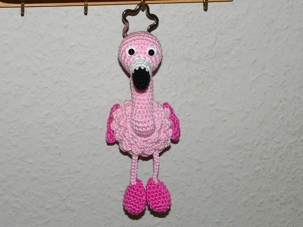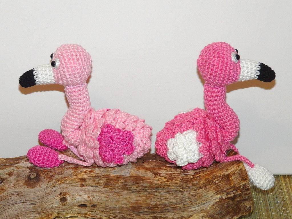 Je nach Garn- und Häkelnadelstärke variiert die Größe von den Flamingos.