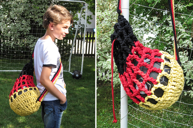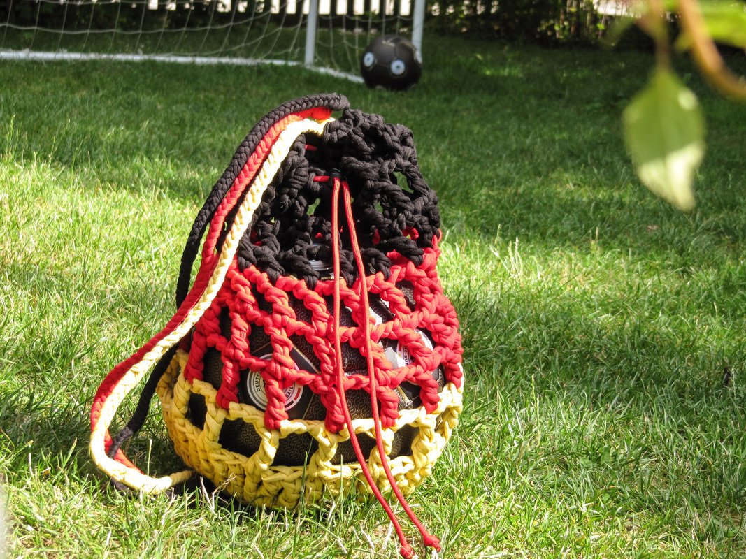 In dieser Anleitung erkläre ich Dir, wie Du ein tolles Ballnetz in den Deutschland-Farben Schwarz/Rot/Gold häkeln kannst.