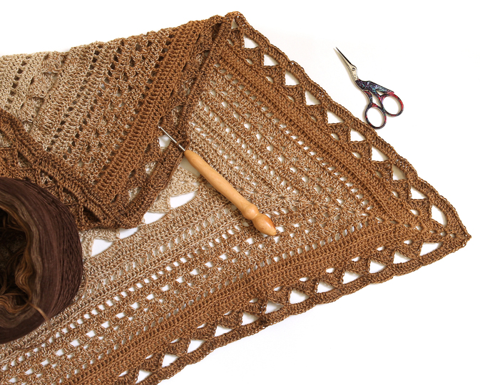 Es gibt eine ergänzende Häkelschrift zum besseren Verständnis für das Dreiecksmuster.