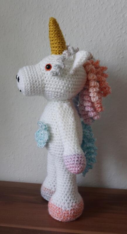 In der Häkelanleitung wird die Fertigung des kompletten Einhorn's in deutscher Sprache und mit zahlreichen Bildern auf insgesamt 11 Seiten beschrieben.
