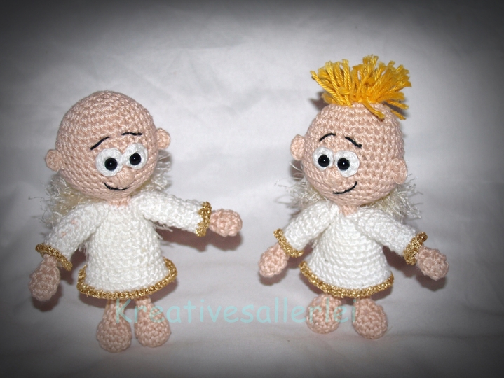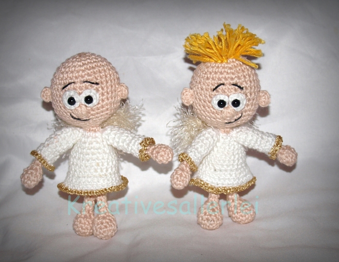 Die frechen Engelchen werden ca 13cm groß.Als Schlüsselhanhänger, Geschenkeanhänger und als Mitbringsel eine tolle Idee und schnell selbst gemacht.