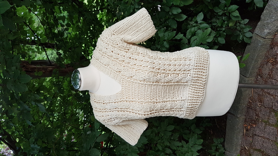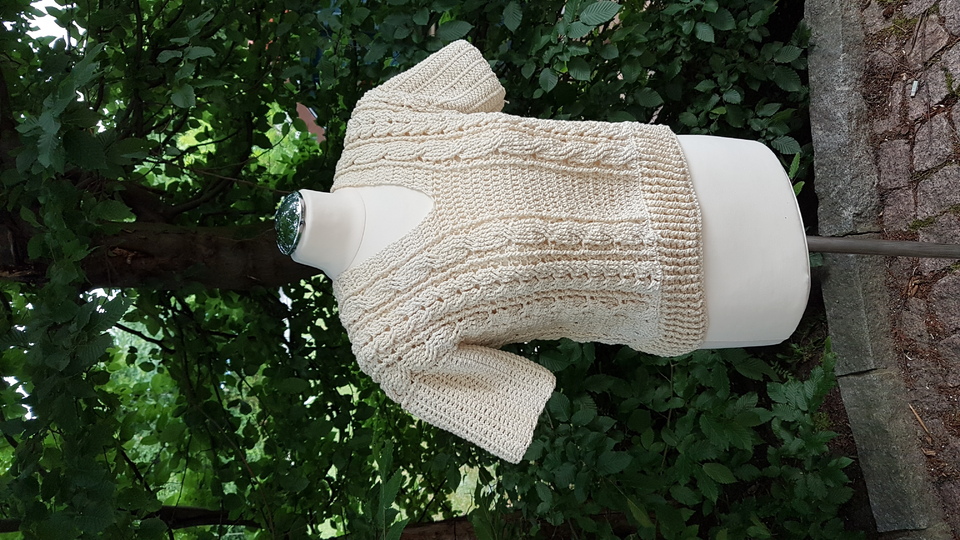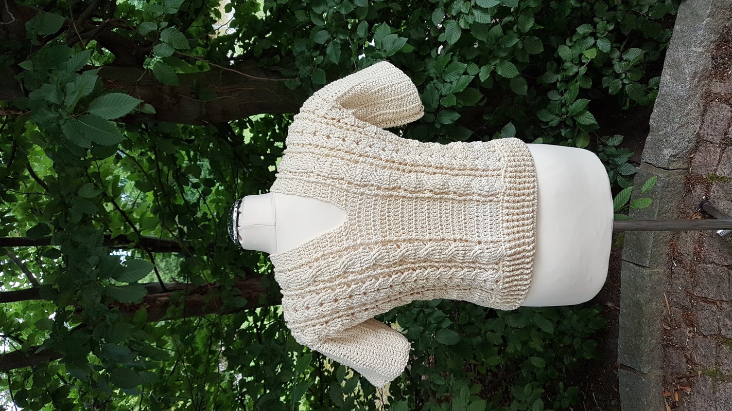 Dies ist die ausführliche schriftliche Anleitung für das sommerliche Shirt V-Smile. Mit Bildern unterlegt gelingt es hiermit jedem sich dieses schicke Oberteil zu häkeln. Man sollte Stäbchen und Reliefstäbchen häkeln können. Wenn man hierbei noch ein paar Problemchen hat schaut euch doch bei YouTube an. Hier gibt es zu allem ein Video. Außerdem wird das Oberteil aus einem Stück gearbeitet. Daher ist auch nur ein Minimum an Näharbeit zu leisten. Ich habe das Oberteil aus Wolly Hugs Nobly angefertigt. Sie besteht aus 74 % Baumwolle und 26 % Seide. Die Lauflänge beträgt ca. 125 m auf 50 g. Ein ideales Sommergarn. Erhältlich in vielen wunderschönen Farben.
