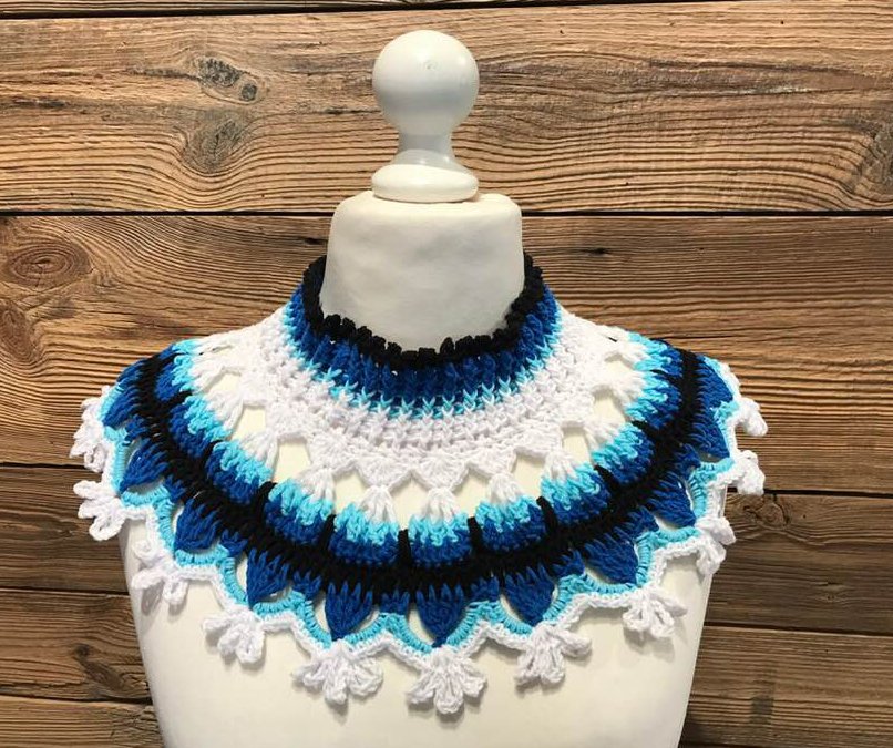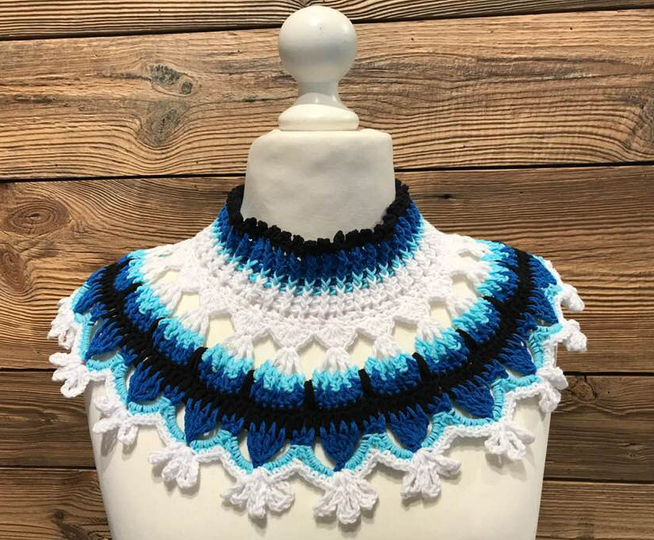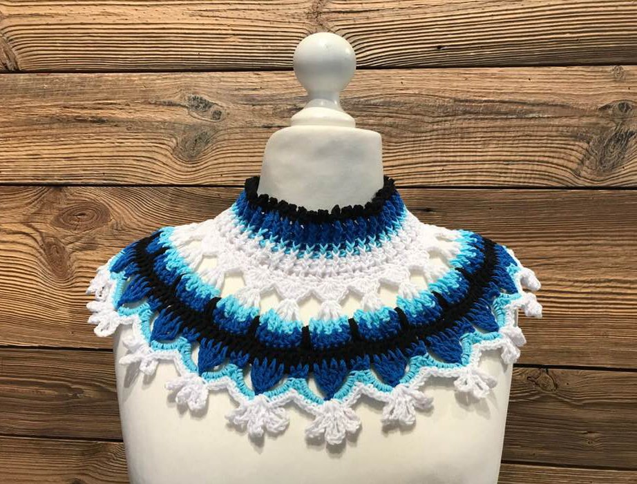 Der Kragen „Susanne“ besteht aus 4 Farben, die zusammen einen harmonischen Farbverlauf bilden. Der Kragen ist ein Schmuck für jeden langweiligen Pullover, Bluse oder Shirt..... Kragen „Susanne“ peppt jedes Outfit auf!
