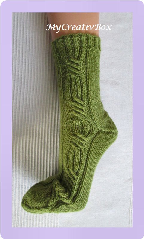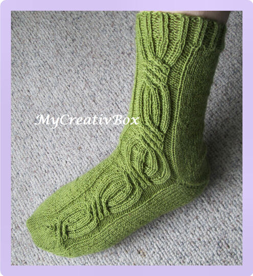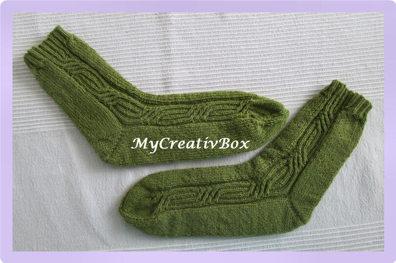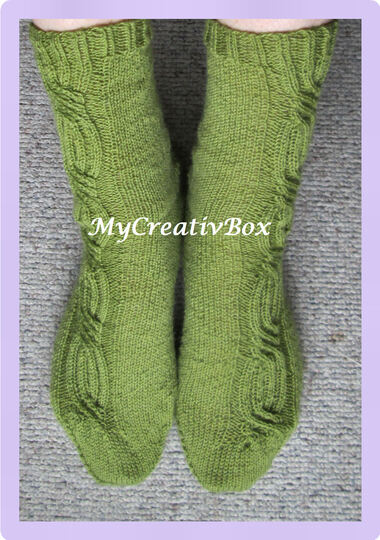 In der Anleitung werden Ferse und Spitze nicht näher erläutert; diese werden in gewohnter Arbeitsweise gestrickt.