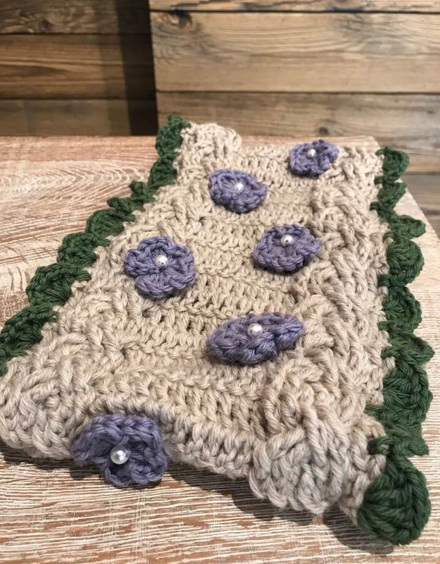 und Häkelnadel 3,5 und noch 10 Perlen als Blumenmittelpunkt