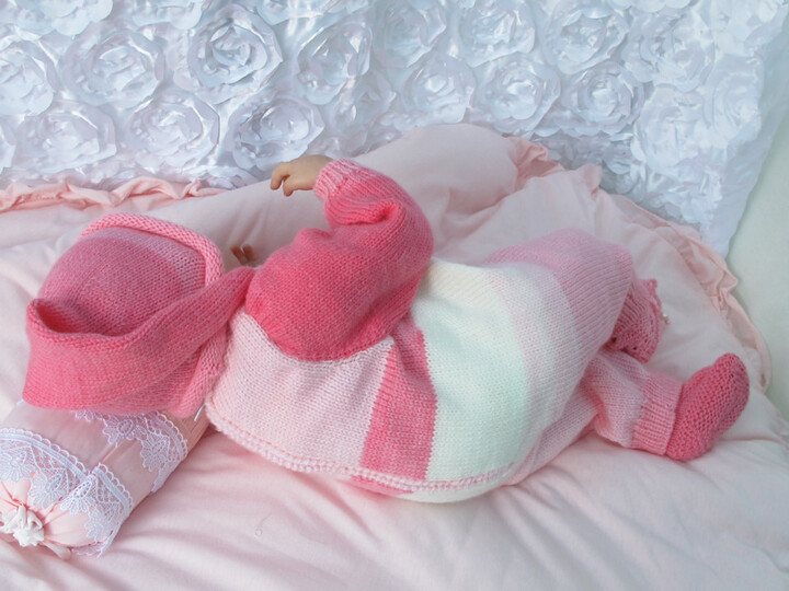 Strickanleitung für ein wunderschönes Set, 3-teilig für Babys & Reborns, Gr. 50/52 Das Set ist aus türkischer Farbverlaufswolle gestrickt. Die Anleitung ist sehr genau beschrieben und mit vielen Fotos