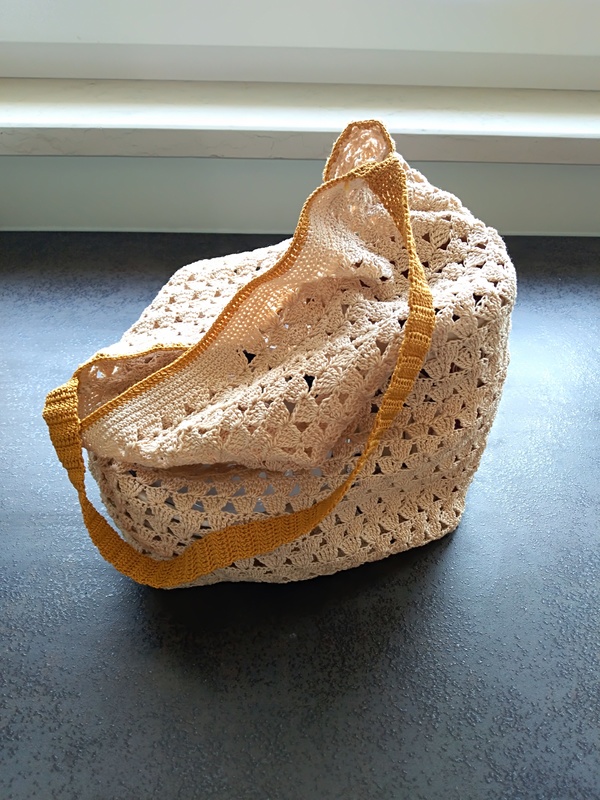 Welche Frau braucht keine praktische Einkaufstasche. Jedes Mal im Supermarkt vergesse ich eine Tasche von zu Hause mitzubringen. Daraufhin habe ich mir meine eigene Einkaufstasche gehäkelt und diese kommt in meine Handtasche und jetzt muss ich nicht immer eine zusätzliche Tasche bezahlen, weil ich meine zu Hause vergessen habe ....