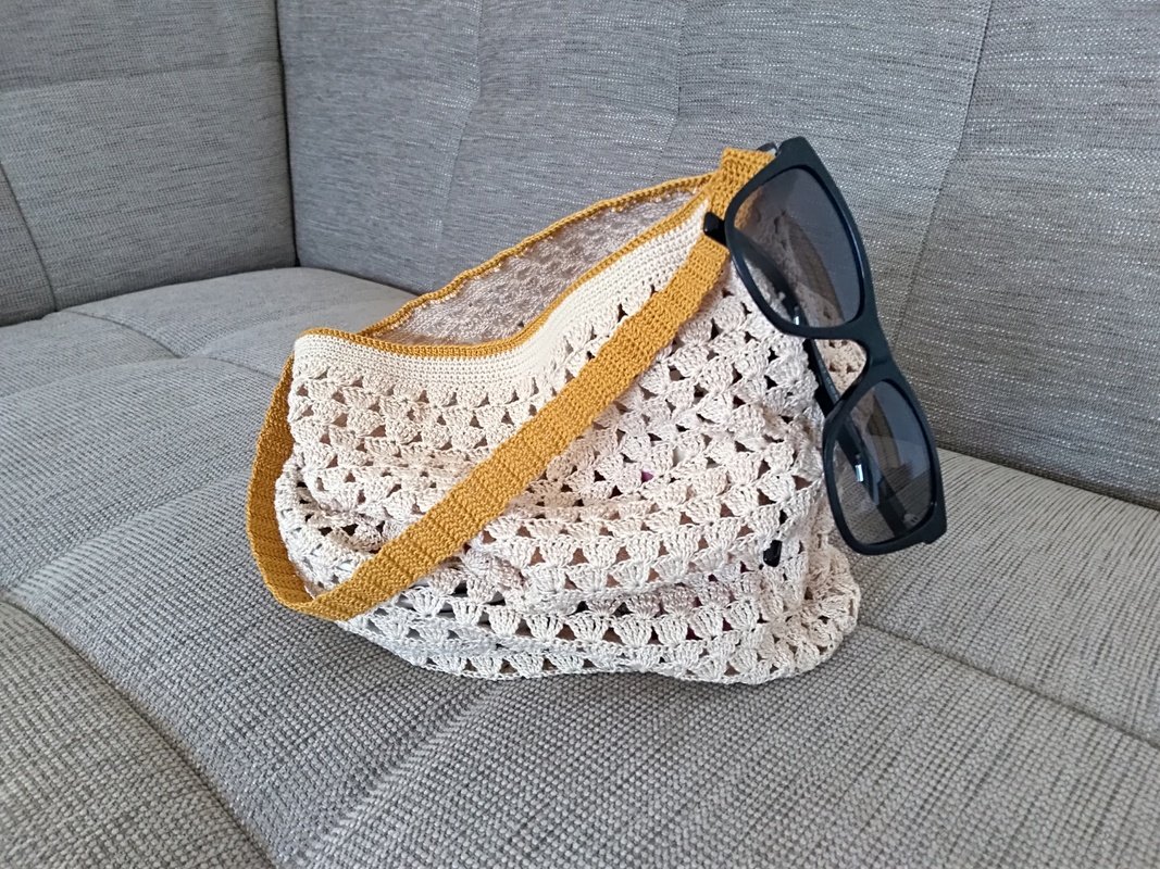 Die Tasche wird immer im gleichen Muster gehäkelt und ist daher für jeden Anfänger geeignet und ist schnell gehäkelt.
