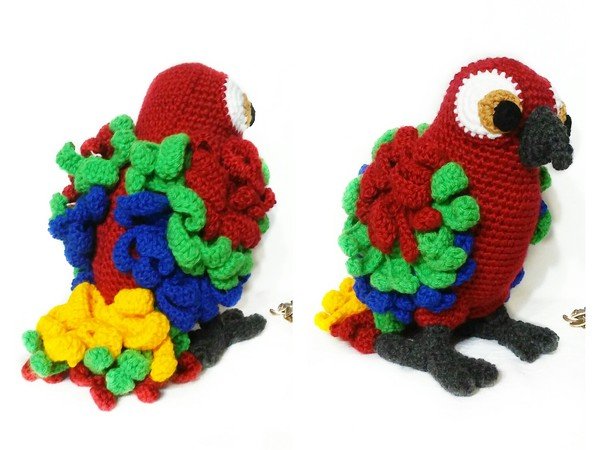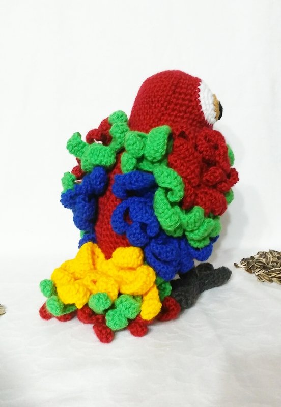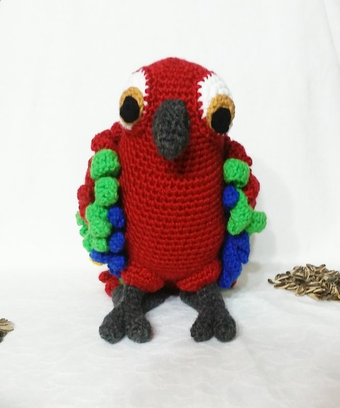 Dieser freundliche Papagei liebt es, in den Ästen zu sitzen, um den Garten blühen zu sehen und die schöne Landschaft der Natur zu genießen. Er ist sehr liebenswert und süß. Seine fertigen Maße sind ungefähr 25cm.