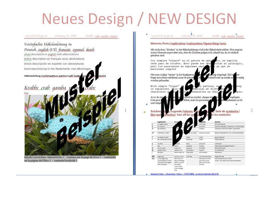 Bei den Fotos oben seht ihr eine Vorschau als Musterbeispiel und bei youtube und auch auf meiner Facebookseite gibt es ein Video zur neuen Aufmachung meiner Häkelanleitung.