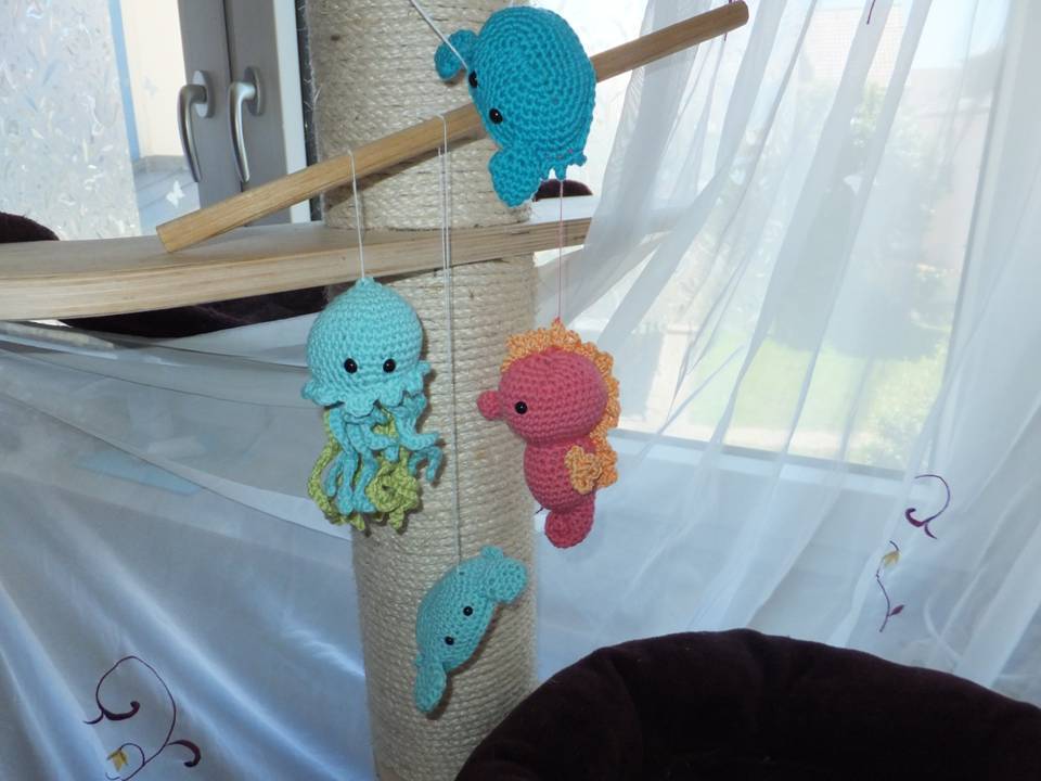Es macht sich toll als Deko, Schlüsselanhänger, an einem Mobile für Babys, Taschenbaumler oder Mitbringsel zur besten Freundin. Bei mir wurde es nun Katzenspielzeug ( siehe Fotos).