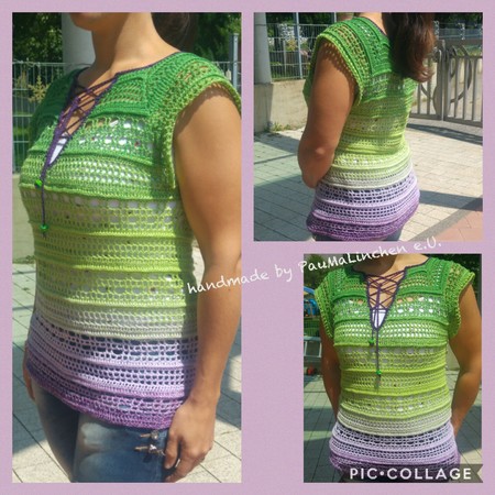 Die Anleitund wurde mit einem 3 fädigen Bobbel 800m für die Größe 36/38 gearbeitet.