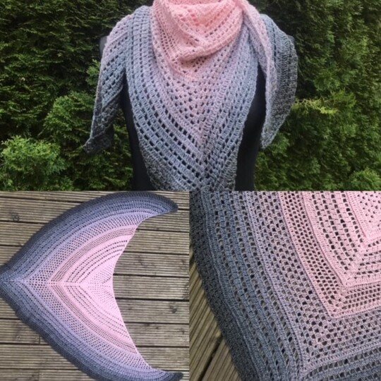 Bei diesem Tuch war alles anders...... Normalerweise nehme ich einen Bobbel oder ein Garn aus meinem riesigen Woll-/Garnangebot und weiß spontan, wie das fertige Objekt aussehen wird, ganz egal, ob Tuch, Pulli, Jacke oder Sonstiges..... und normalerweise stricke ich ohne Unterbrechnung und das auch noch "frei-schnauze". Zum Häkeln bin ich erst kurz vor Weihnachten 2017 gekommen und habe mit dem Half Granny angefangen und irgendwie entstehen nun ständig neue Tücher in meinem Kopf, ohne dass ich mit dem "Abarbeiten" hinterherkomme...... Dieses Tuch entstand u. a. während eines Klinikaufenthaltes und fand schon viele Freunde während des Entstehens, deshalb bekam es den Namen des Ortes, wo ich war.