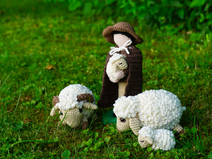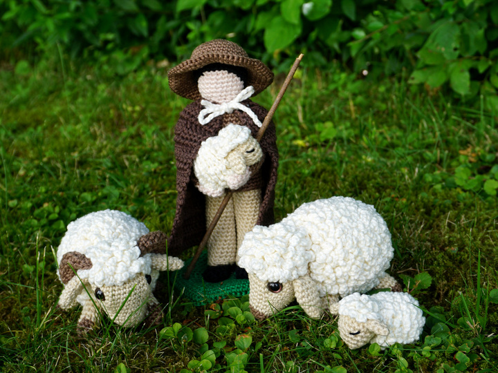 Der Hirte mit seinen Schafen gehört leider längst nicht mehr zum Landschaftsbild in unserer Gegend. Hier hast du eine Anleitung, mit der du dir den Hirten mit seiner Herde zu dir nach Hause holen kannst. Es ist ein so schönes, friedliches Bild, dass du garantiert eine ganze Herde zum Hirten häkelst, wenn du erst einmal damit angefangen hast. Viel Spass!