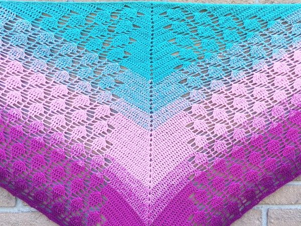 Durch das Hinzufügen oder Weglassen von Reihen können Sie kleinere oder größere Tücher arbeiten, da das Muster „endlos“ ist.