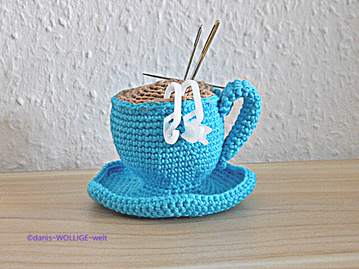 Du kannst auch gerne andere Wolle benutzten, die Größe der Tasse ändert sich dadurch.