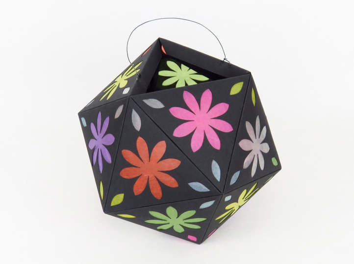 Das Bekleben mit dem verschiedenfarbigen Transparentpapier ist etwas aufwendig. Wenn du dir diese Mühe nicht machen möchtest, kannst du dich auf zwei Farben beschränken – eine für die Blüten und eine für die Eckblätter oder sogar alle Grundformen mit gleichem Transparentpapier bekleben. In diesen Fällen ist es einfacher, erst alle einzelnen Elemente der Laterne fertigzustellen und sie dann zu einer Laterne zusammenzufügen.