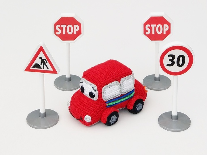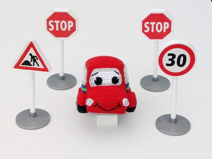 Auf 11 Seiten und 42 Fotos erkläre ich Dir die Nacharbeitung von diesem süßen Auto. Mit dem angegeben Garn wird das Auto 13 cm lang, 9 cm breit und 7,5 cm hoch.