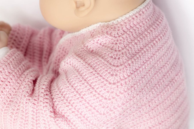 Diese süße Baby Wickeljacke wird raglan von oben gehäkelt und kommt daher komplett ohne Nähte aus. Hier kann nichts drücken.