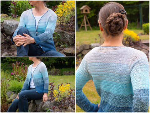 Häkel die Jacke in deiner Wunschfarbe – das Garn gibt es in sehr vielen Farben und Farbverläufen – eine Farbe schöner als die andere.