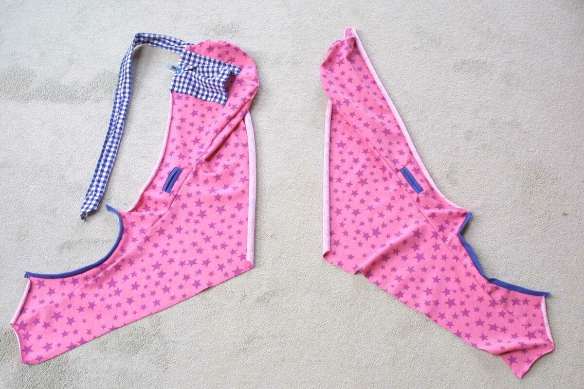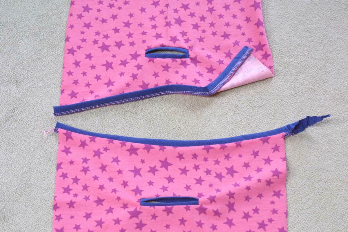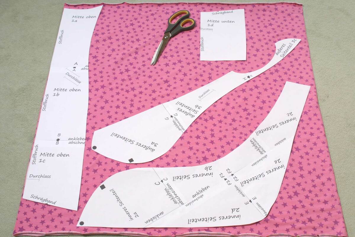 Der Schnitt bedarf 80 cm Jersey oder Ähnliches plus 30 cm Baumwolle oder Ähnliches plus 110 cm Gummiband. Eine Overlock ist günstig.