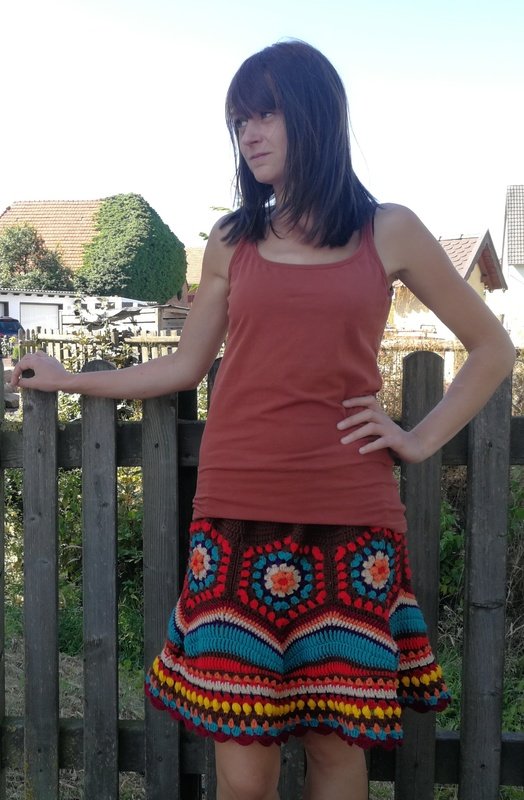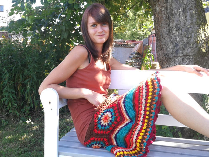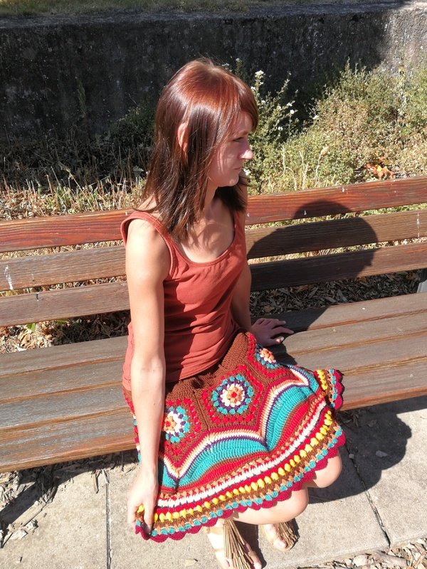 Jetzt dürfen sich auch Damen diesen kunterbunten Rock häkeln.