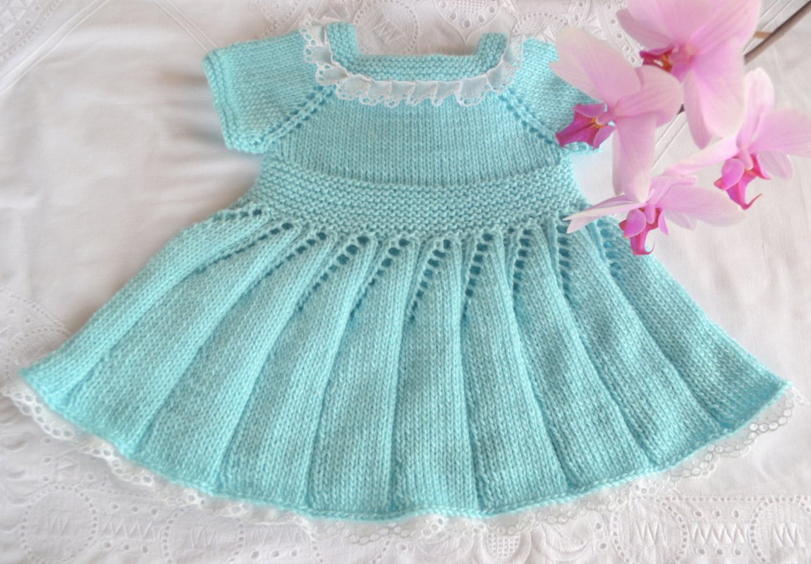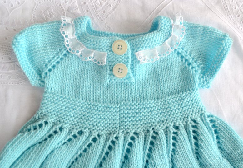 Anleitung für ein gestricktes Baby Kleid Gr. 50 - 86. RVO - Raglan von oben
