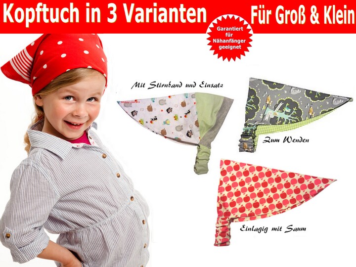 Schnittmuster für ein Kopftuch in 3 verschiedenen Varianten