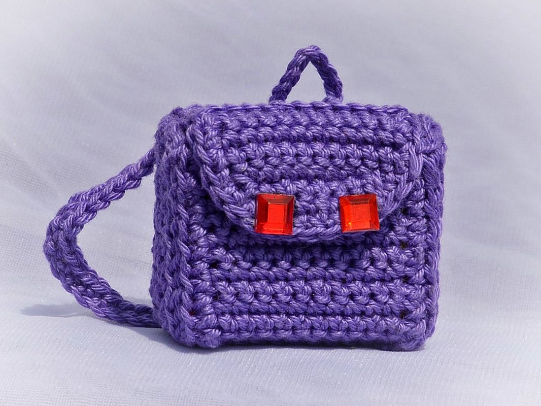 Mit der angegebenen Wolle wird der Ranzen ca. 5 cm x 5 cm x 2,5 cm groß.